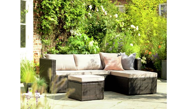 Rattan garden furniture sofa set grey black brown patio outdoor corner lounge.
